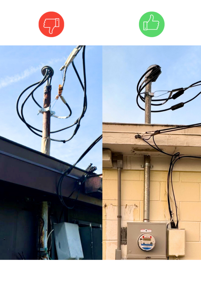 • Rust forming on the service mast or conduit